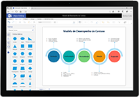 Trabalhe em equipe nos fluxogramas do Visio e inclua informações de todos os participantes. E com o Office 365*, vários membros da equipe podem trabalhar nos diagramas ao mesmo tempo.